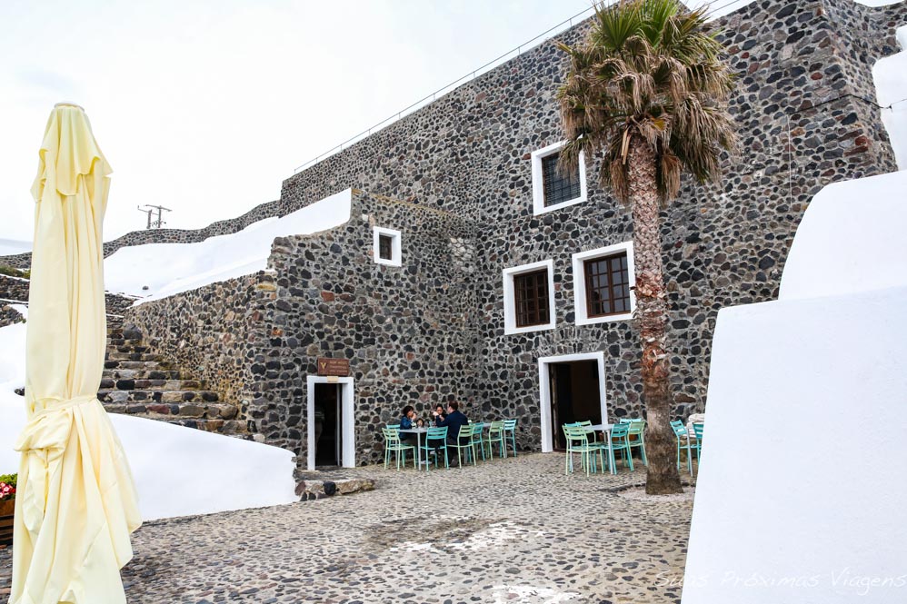Há várias vinícolas em Santorini e alguns vinhos brancos e de sobremesa são ótimos. Como recebemos como cortesia bons vinhos brancos produzidos na ilha, ficamos animados a participar de uma degustação.