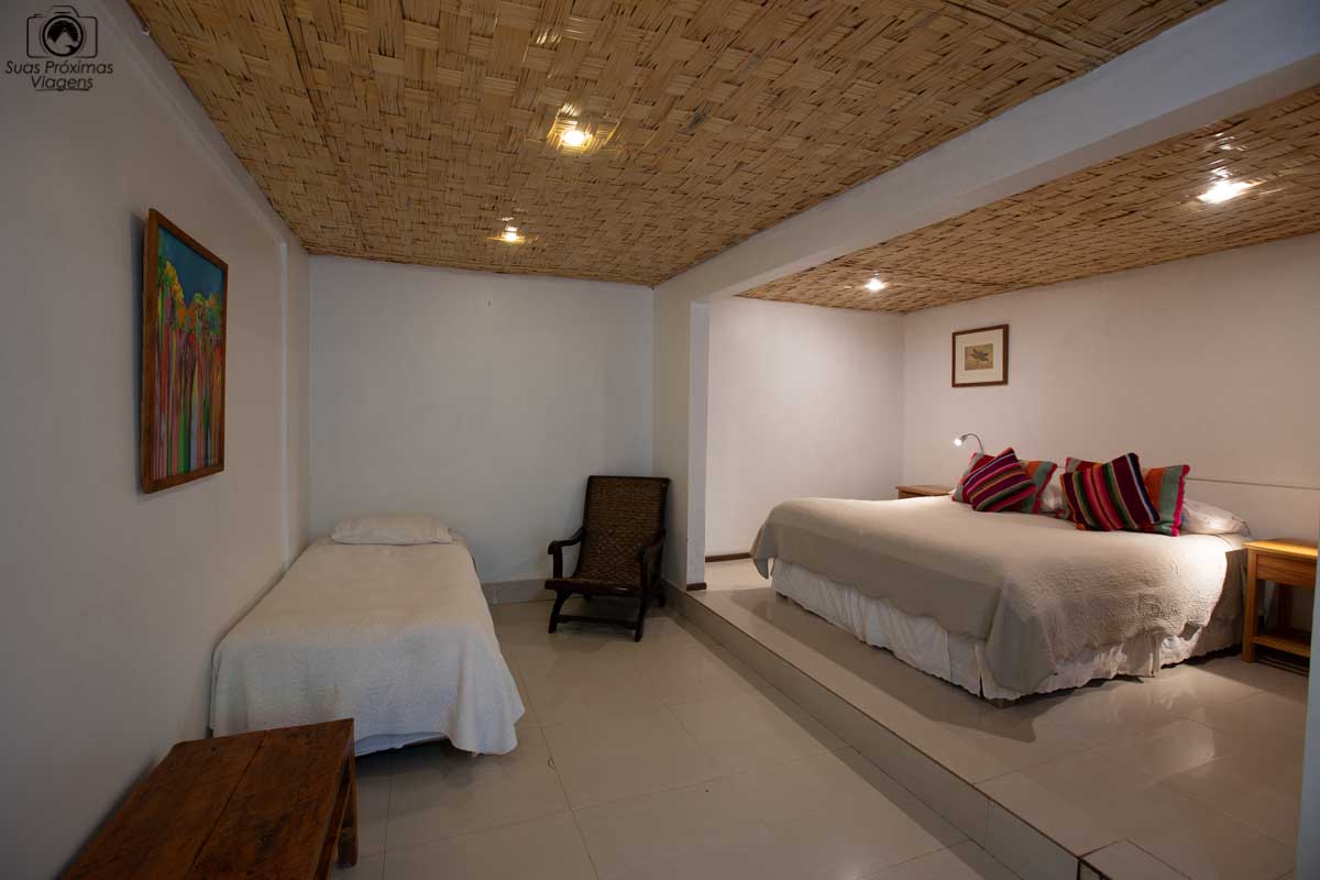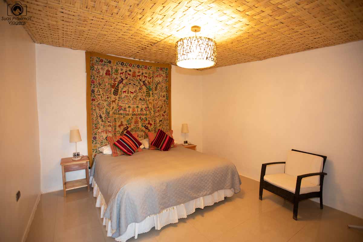 Os quartos são amplos e arejados. As camas super confortáveis, o que é uma delícia em um destino onde caminhamos tanto como o Atacama. Cada habitação tem decoração própria, todas com referências à cultura local. Estas influências são claramente notadas através das combinações das cores e peças de artesanato local. Ventiladores de teto ou com base estão à disposição dos hóspedes.